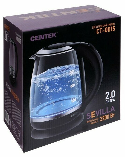 Чайник Centek CT-0015 Sevilla стекло, 2л, 2200Вт