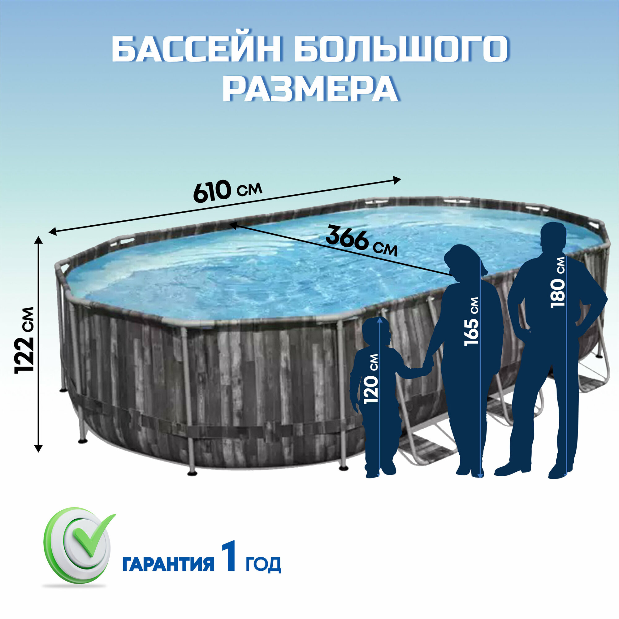 Бассейн каркасный Bestway, 610х366х122 см, Power Steel Oval Pool, 5611R, фильтр-насос, лестница, тент, 20241 л, поплавок-дозатор