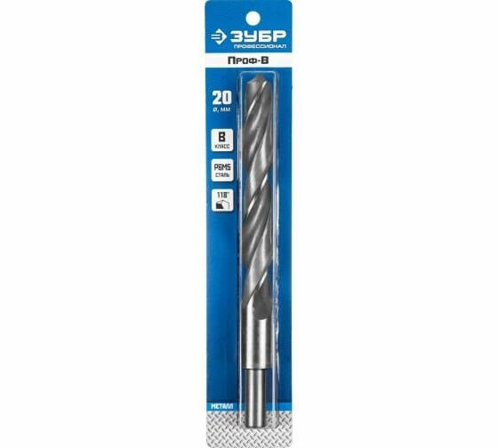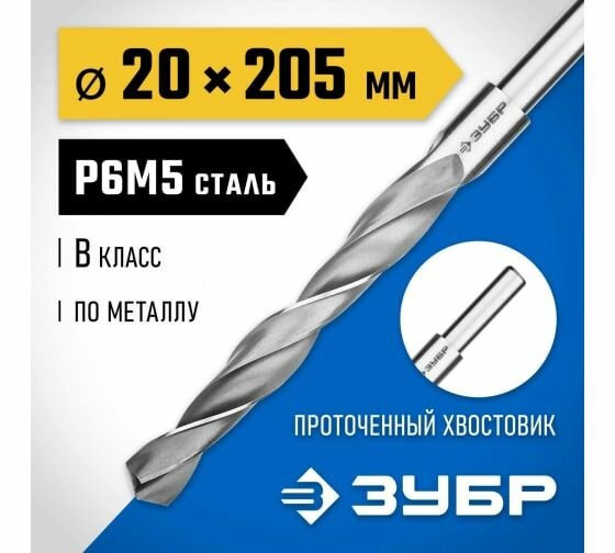 ЗУБР ПРОФ-в 20.0х205мм, Сверло по металлу, проточенный хвостовик, сталь Р6М5, класс В (29621-20)