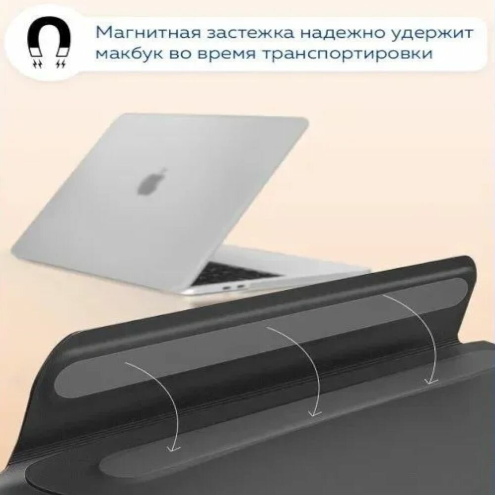 Чехол из экокожи для MacBook 13 Air Pro M1 M2 intel / Чехол с магнитной застежкой WiWU Skin Pro 2 для Макбук Аир Про 13 2016-2022 (A1932 A2179 A2337 A1939 A1706 A1708 A2159 A2289 A2251 A2338), Цвет: Графитовый