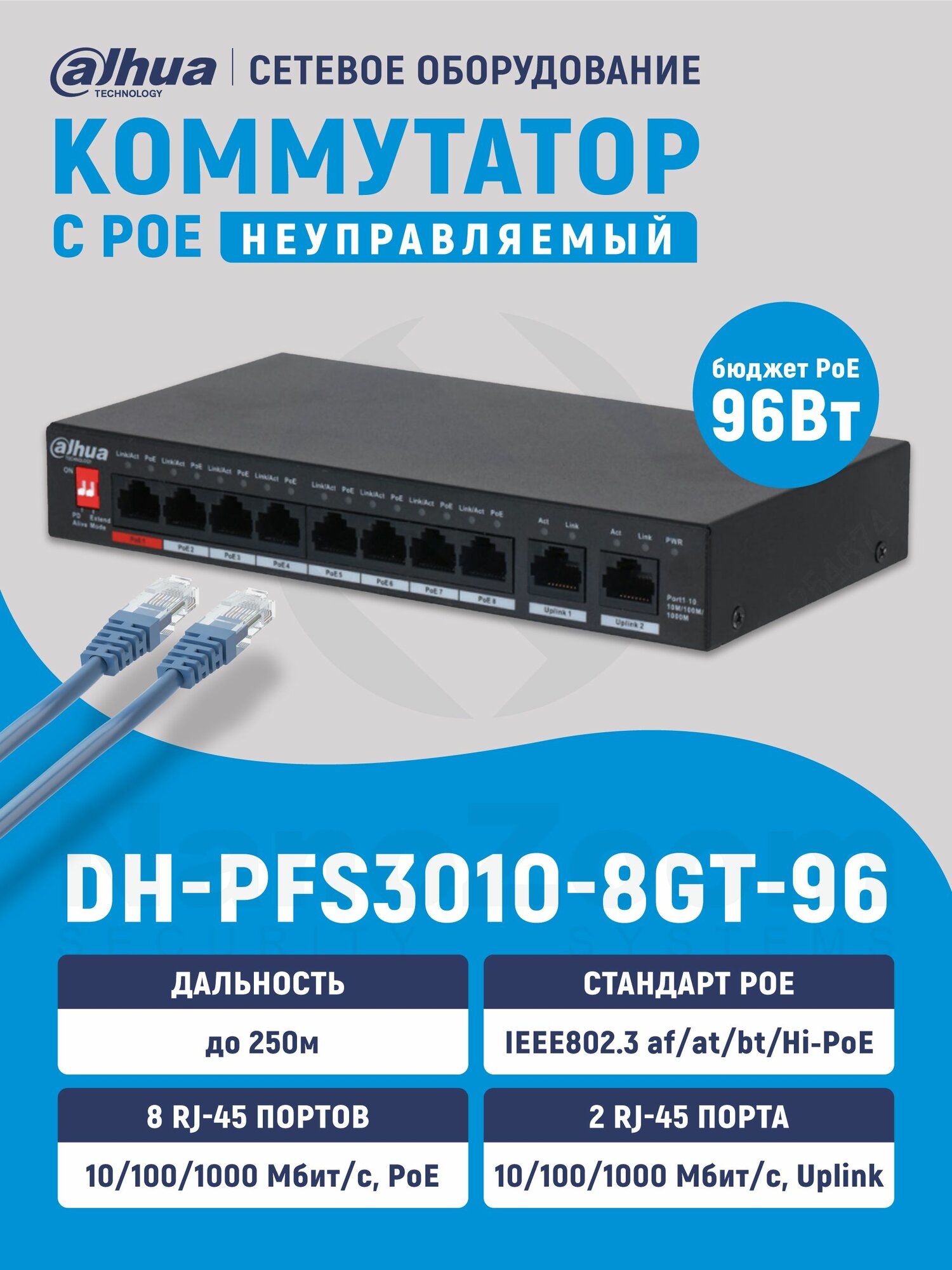Dahua DH-PFS3010-8GT-96 8-портовый неуправляемый коммутатор с РоЕ интересное: