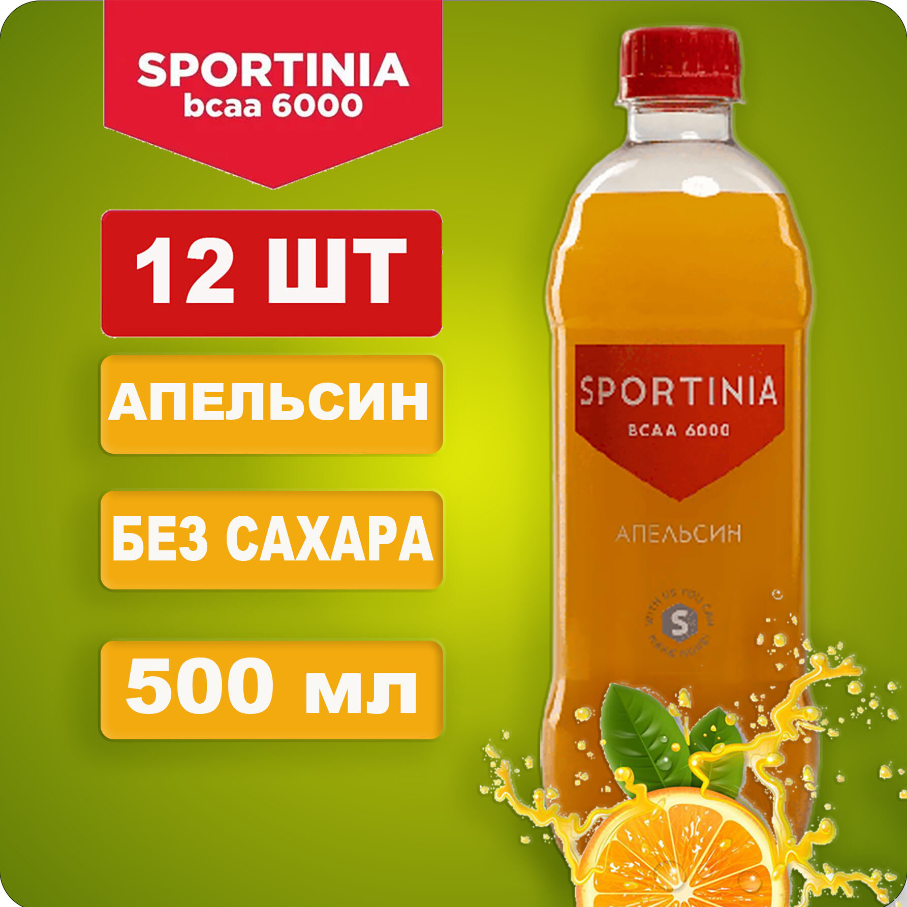 Sportinia BCAA 6000 (аминокислоты) Апельсин 0,5л.*12шт. Спортиния