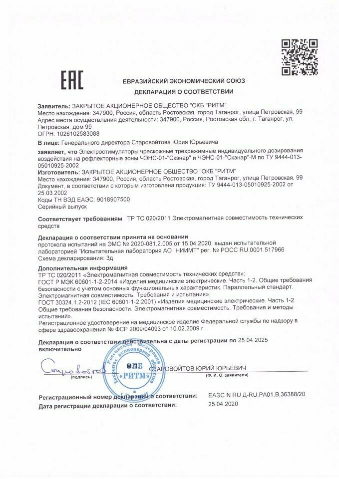 ЧЭНС-01-СКЭНАР, (оригинал) биоуправляемый электронейростимулятор