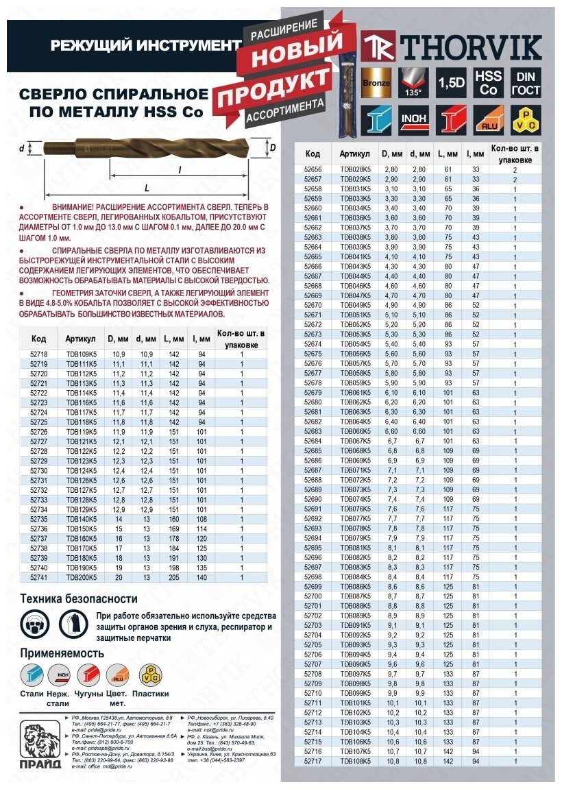 Сверло По Металлу Hss Co 4.1мм Упаковка Пвх Tdb041k5 Thorvik THORVIK арт. TDB041K5