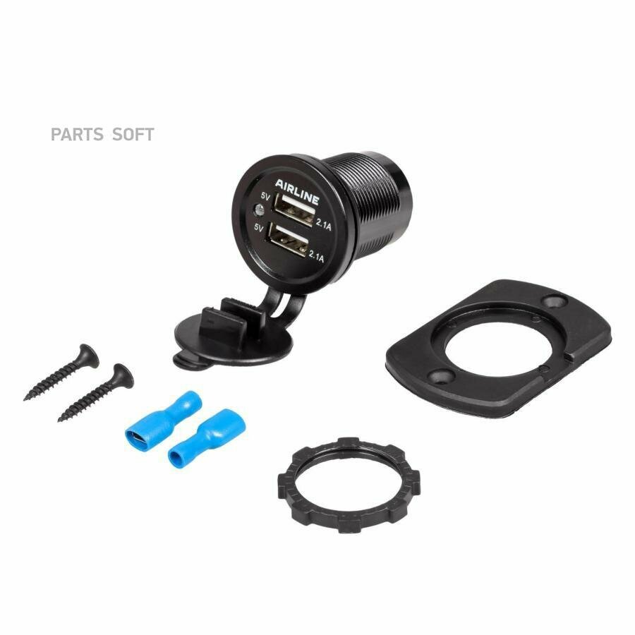 Розетка Автомобильная "Airline" (Usb Встраиваемая Влагозащитная, 2 Порта (5В, 2.1А + 2.1А)) AIRLINE арт. AEBJ205