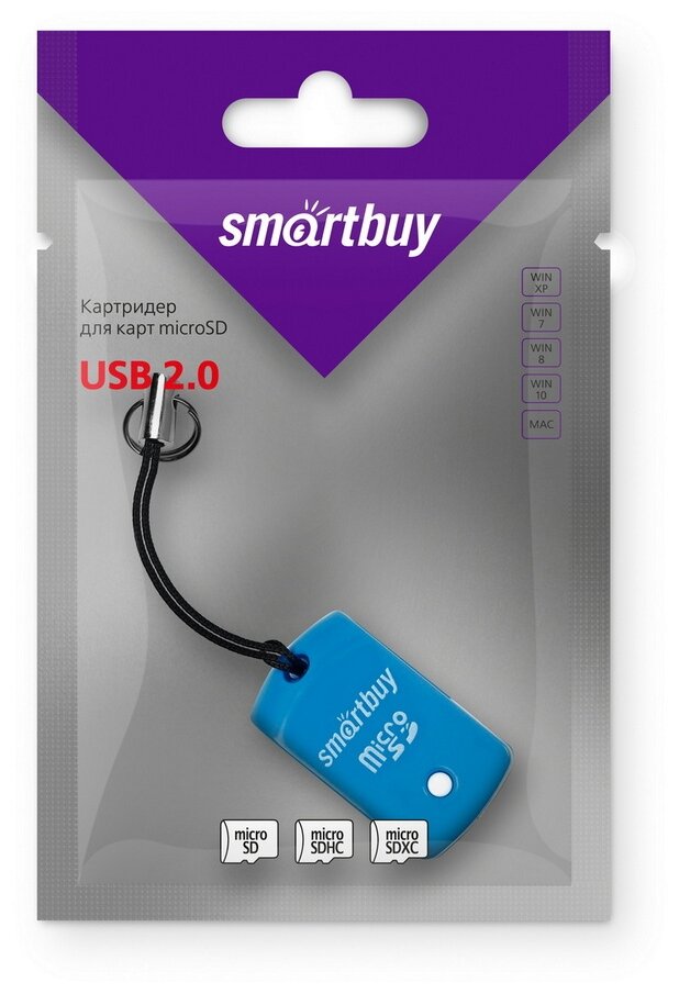 Картридер микро Smartbuy, USB 2.0 - MicroSD, 706 голубой (SBR-706-B)