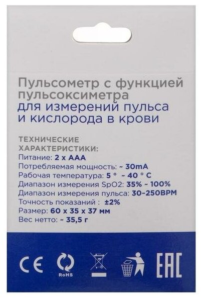 Пульсоксиметр ""Energenie"" Eg-po2w, белый с синим 18476 .
