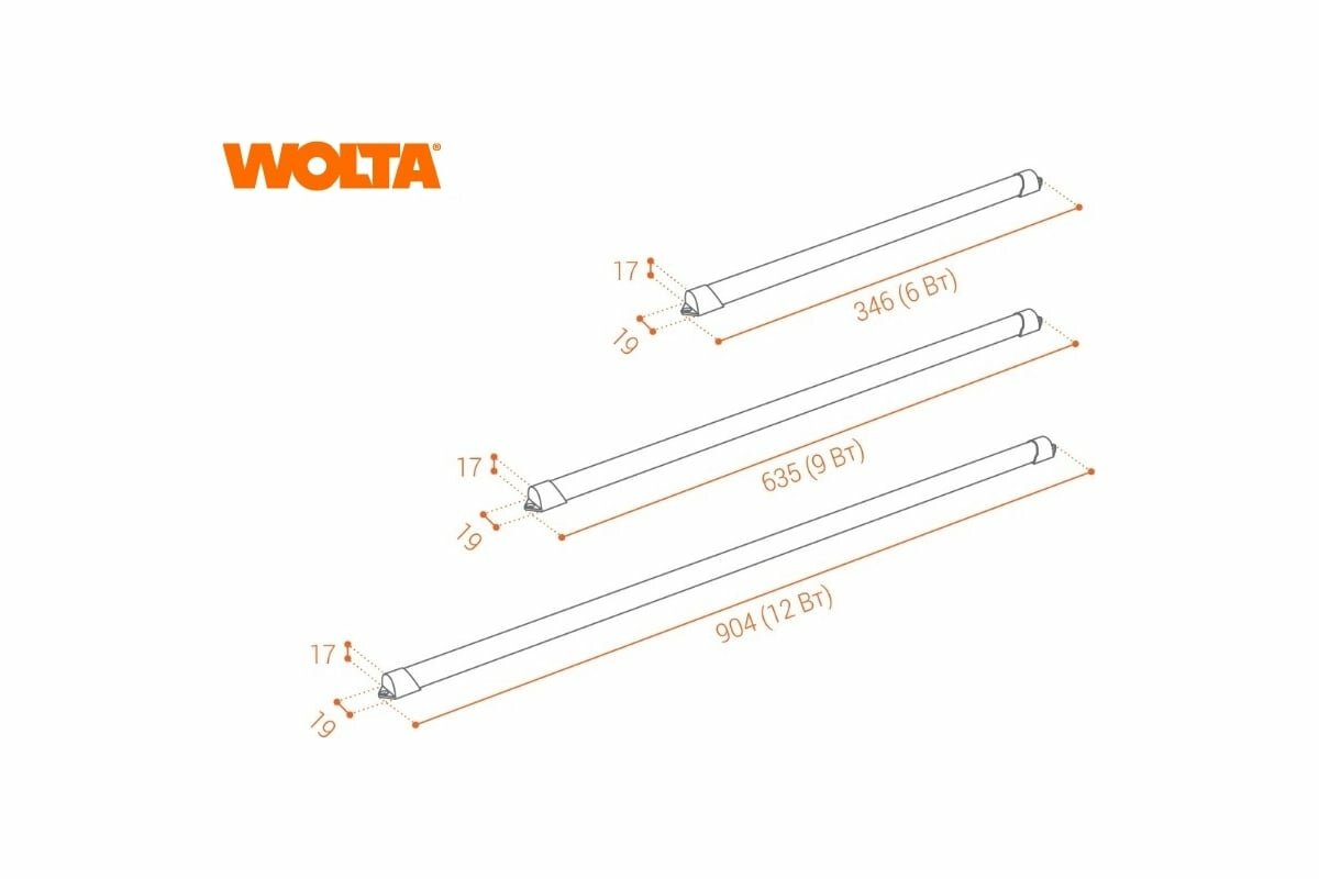 Wolta св-к св/д линейный IP65 9W(755lm) 6500K 6K 600x10x17 пласт (ДСП,ССП,ЛСП) WT4W9W