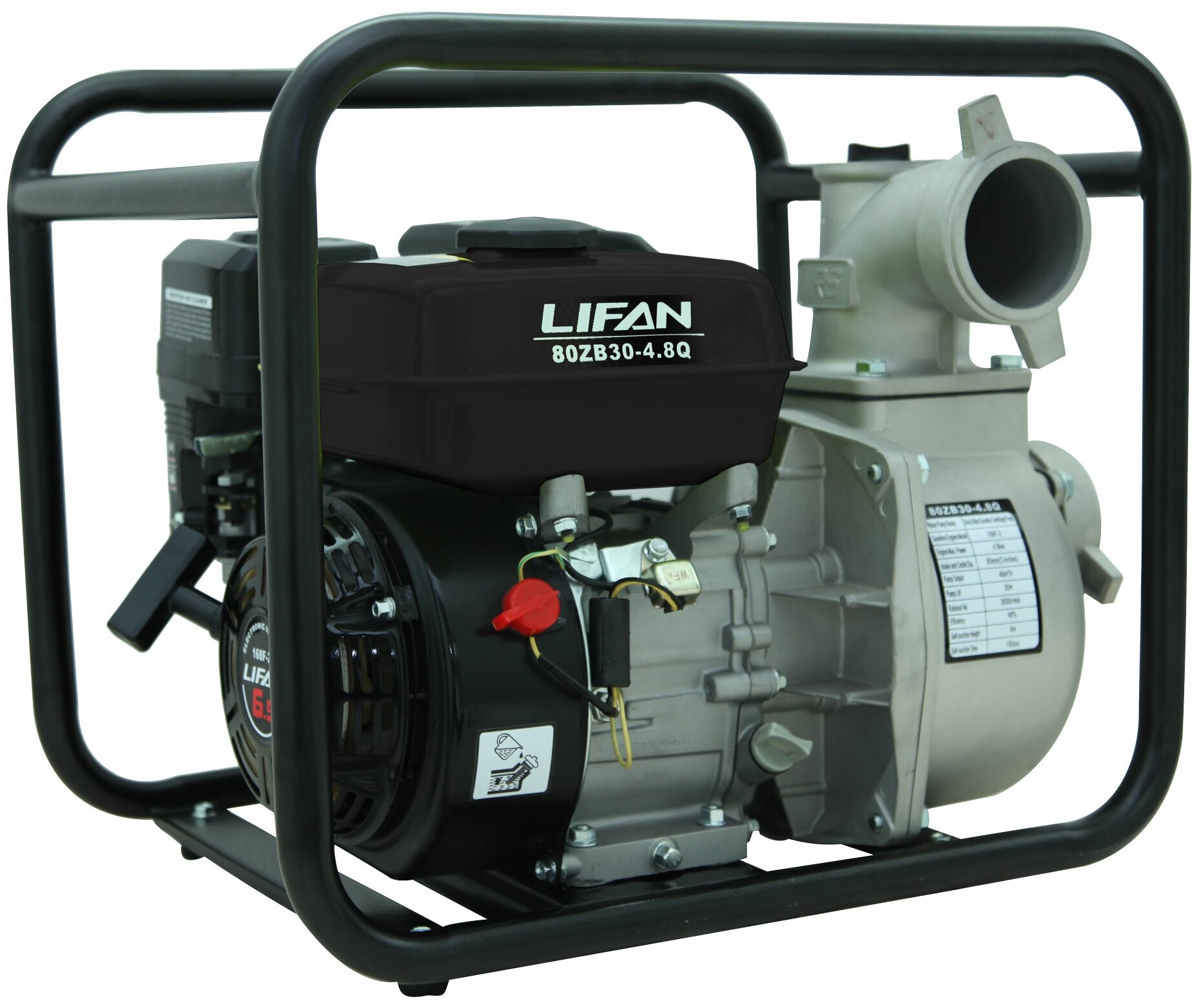 Мотопомпа бензиновая Lifan 80ZB30-4.8Q (6.5л.с., 800л/мин, 80мм)