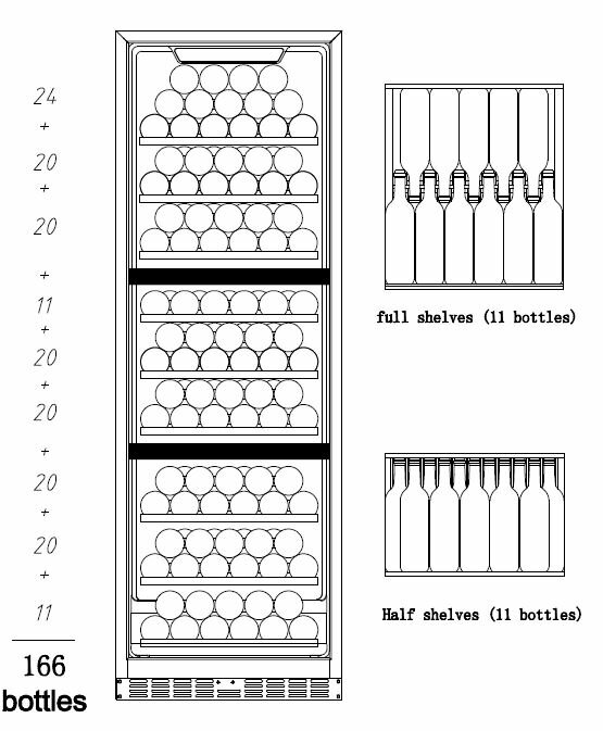 | Емкость винного шкафа, бут. | 166 |