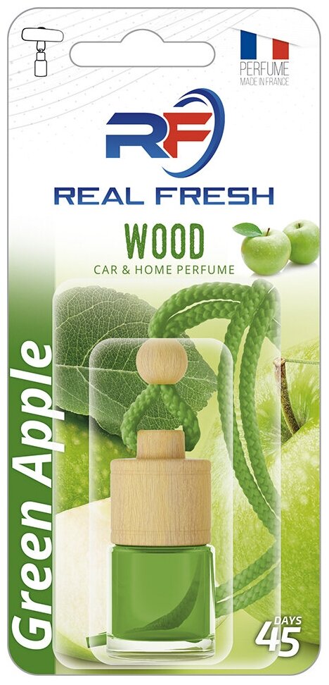 Ароматизатор на зеркало Real Fresh Wood бутылочка зеленое яблоко, RF000709 (1 шт.)