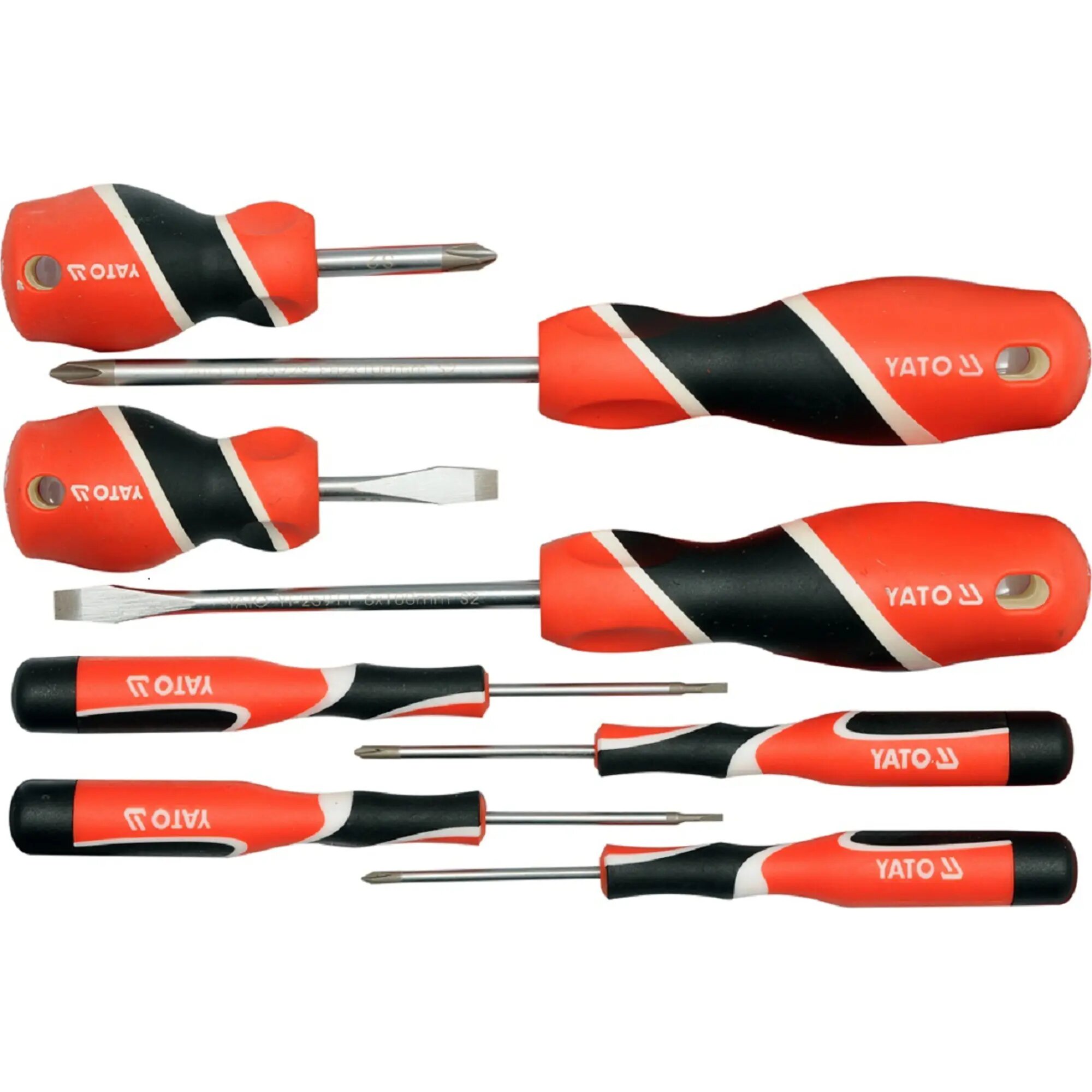 Набор отверток 8 пр: SL2 х 50 мм, SL2.4 х 50 мм, SL6 х 38 мм, SL6 х 100 мм, РН0 х 50 мм, РН1 х 50 мм, РН2 х 38 мм, РН2 х 100 мм YATO YT-25980