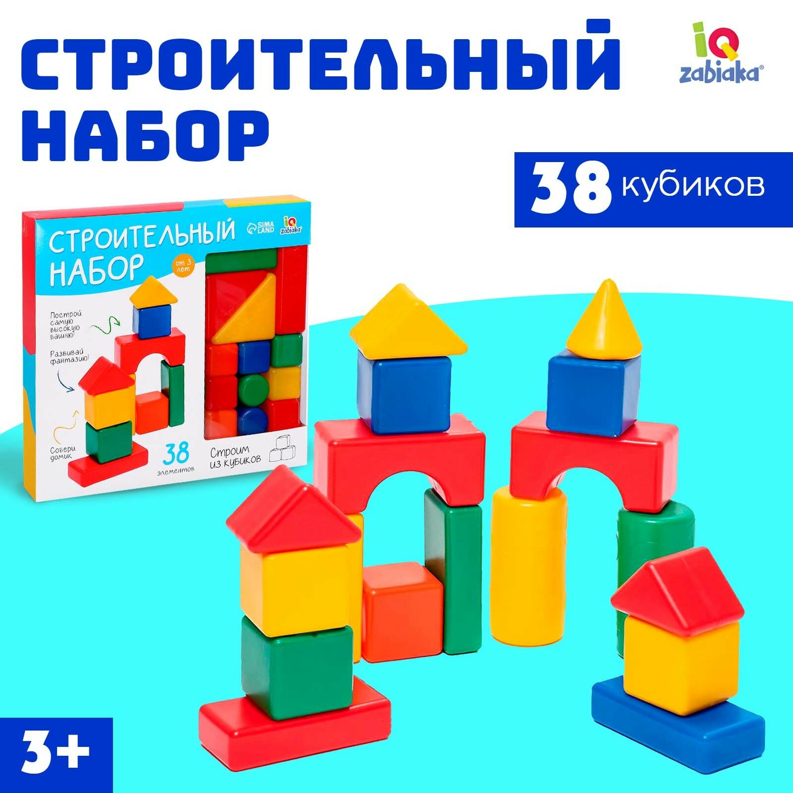 Набор кубиков, строительный, 38 элементов, 4 × 4 см