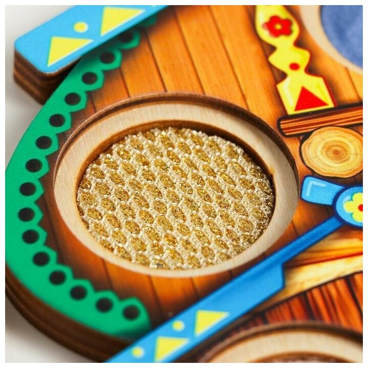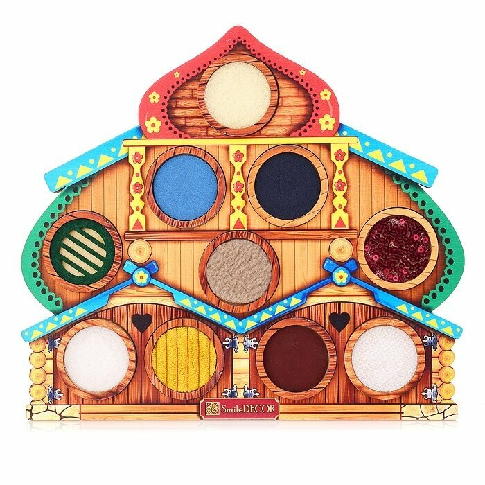 Тактильная сенсорная игра "Теремок", деревянная рамка-вкладыш с окошками для сенсорного развития, 10 фишек-фактур интересное: