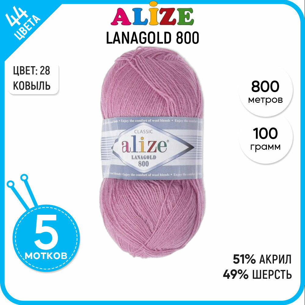 Пряжа Alize Lanagold 800 (Ланаголд 800) - 5 мотков Цвет: 28 роза (Ланаголд 800) 49% шерсть, 51% акрил 100г 730м