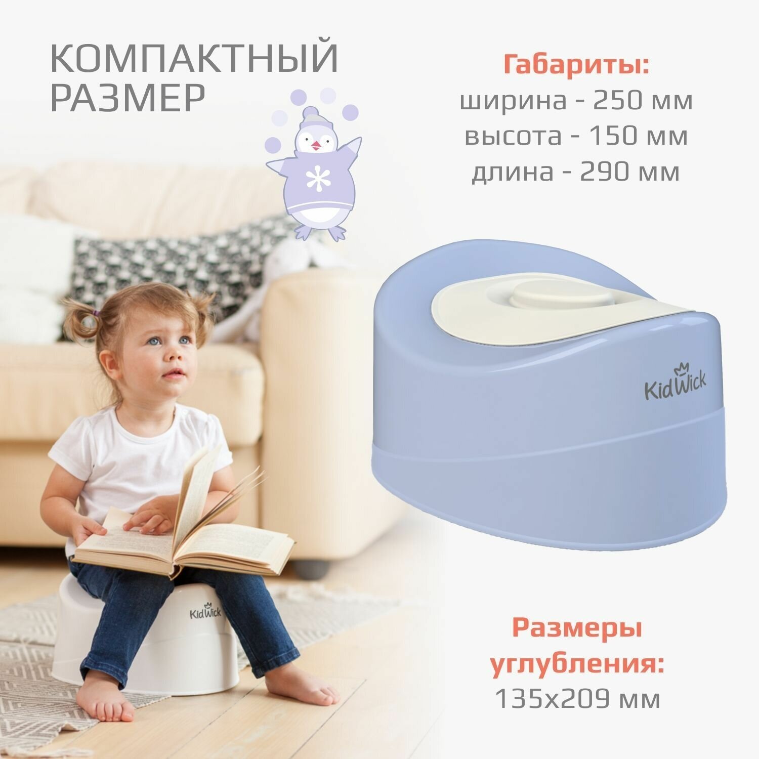 Горшок детский для мальчика Kidwick Мини с крышкой, голубой