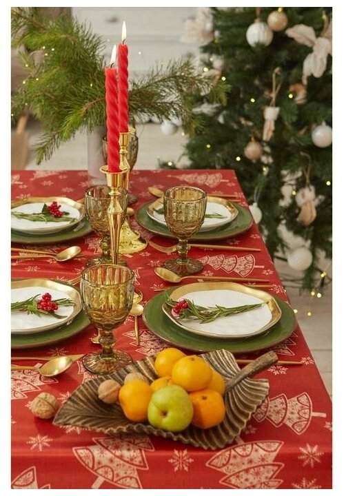 Скатерть новогодняя Доляна «Ёлочки» 145*220 +/- 2 см, 100% п/э интересное: