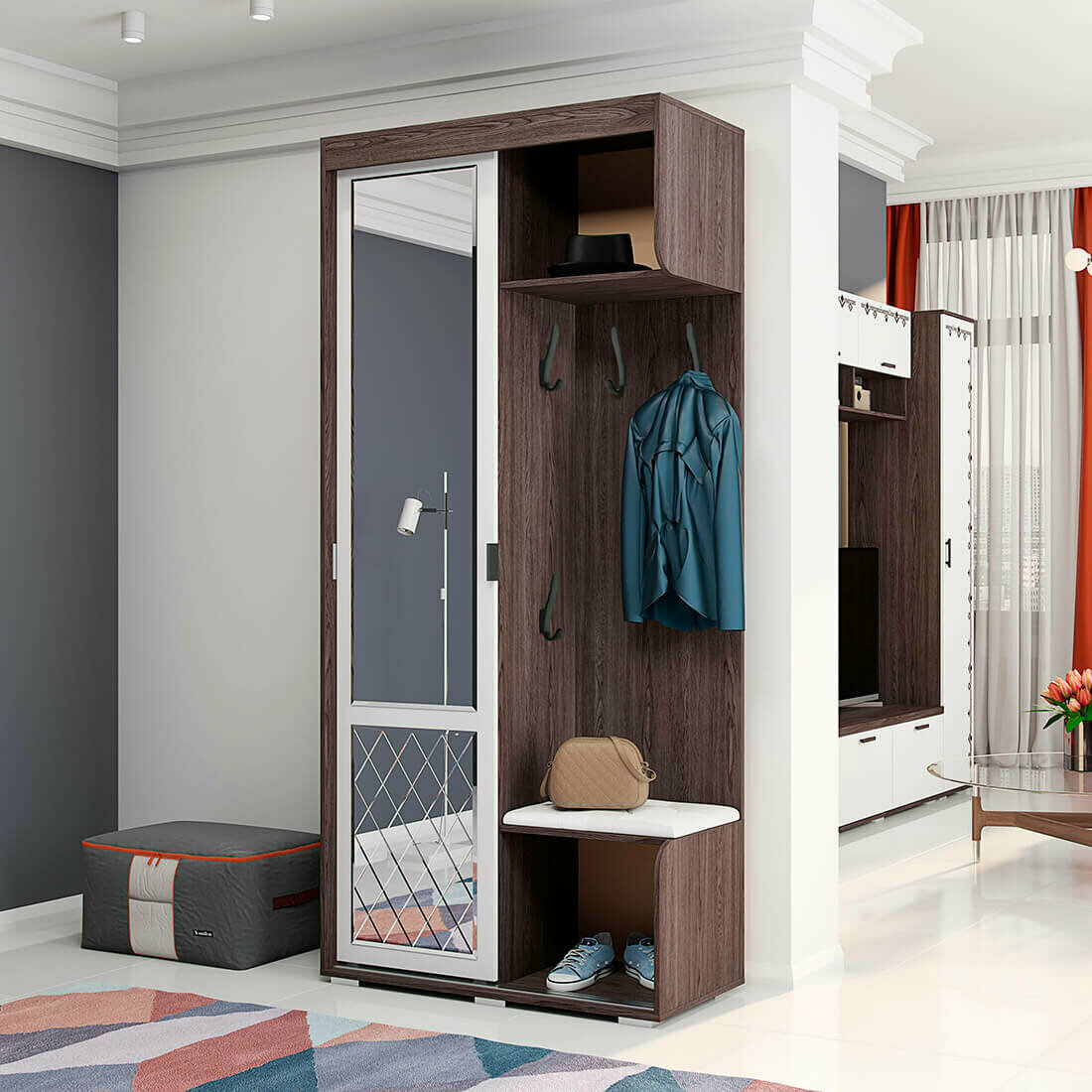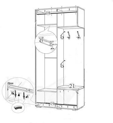 | Особенности | для маленькой прихожей, для узкой прихожей, мягкое сиденье, с местом для сидения, со штангой для вешалок, шкаф с зеркалом |