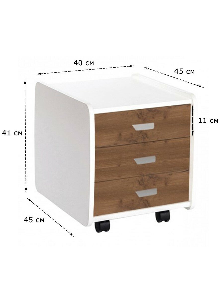 Тумба выкатная Астек Лидер на 3 ящика белый/дуб