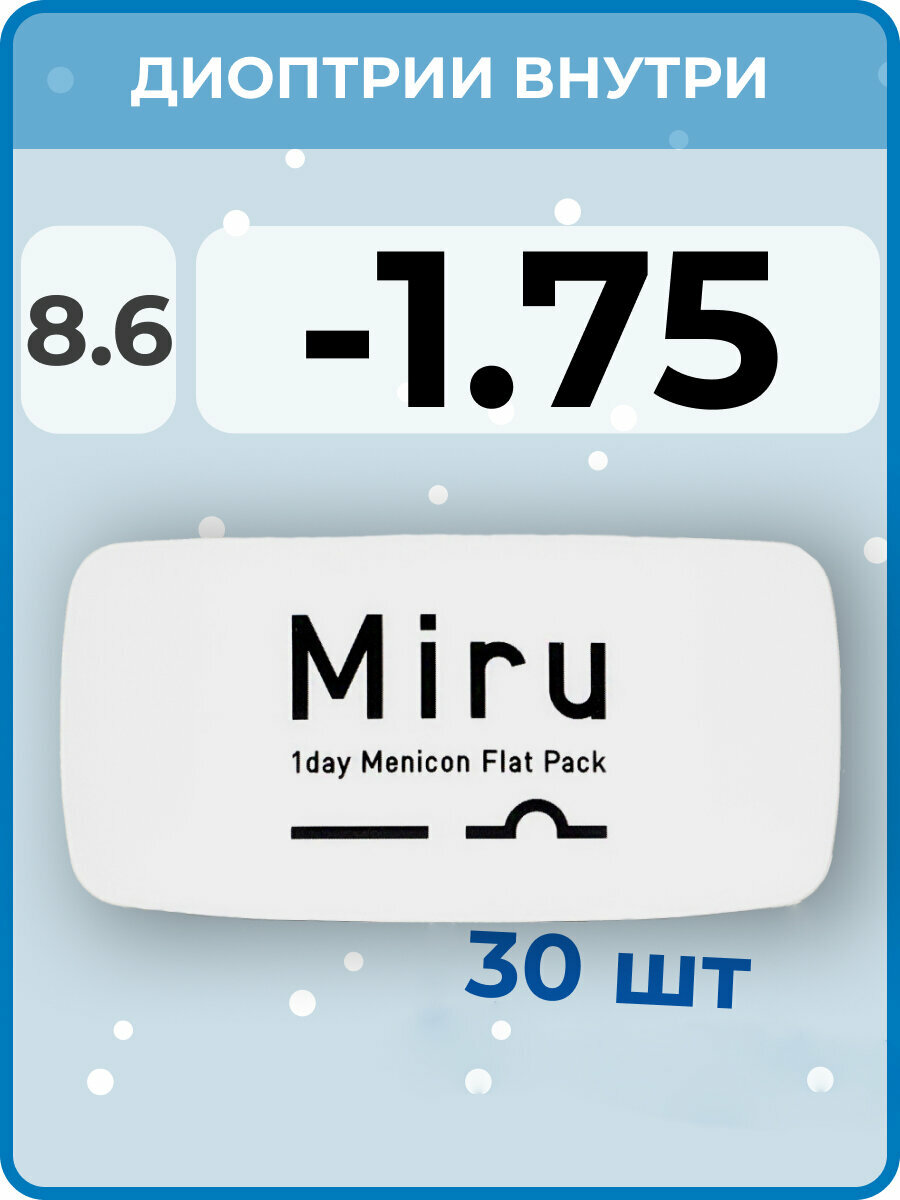 Контактные линзы Menicon Miru 1 day Flat Pack, 30 шт., R 8,6, D -1,75