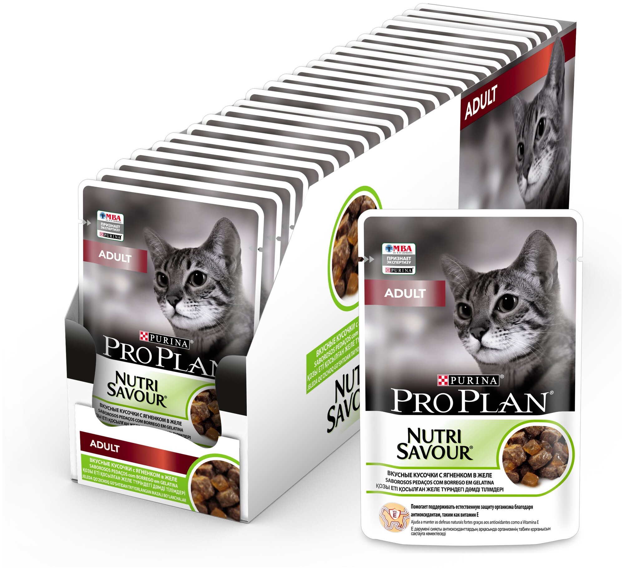 Pro Plan Cat Adult 85г Пауч Влажный корм для взрослых кошек Ягненок вкусные кусочки в желе 85г. Цена за упаковку,в упаковке 12шт(12штх85г)