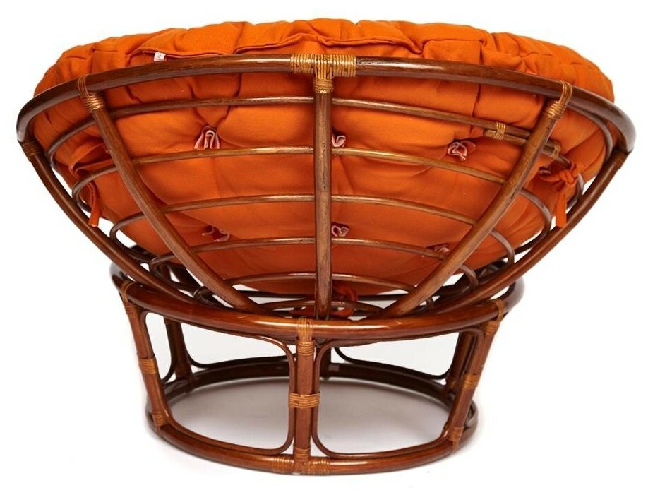 Кресло "Папасан" с ротангом коричневое / оранжевая подушка M-Group
