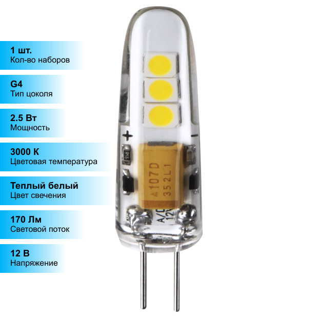 Лампа светодиодная LED 2.5вт 12в G4 тепло-белый капсульная 19827 Navigator Group интересное: