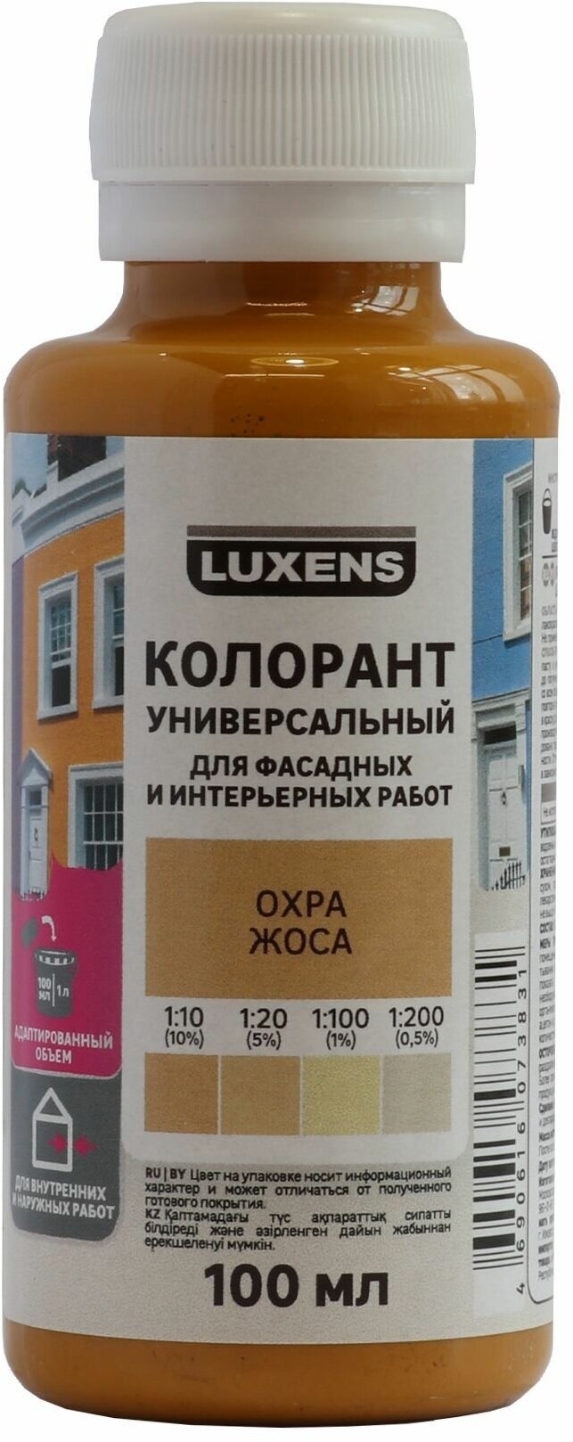 Колеровочная паста Luxens колорант универсальный для интерьерных и фасадных работ, охра, 0.1 л, 0.14 кг