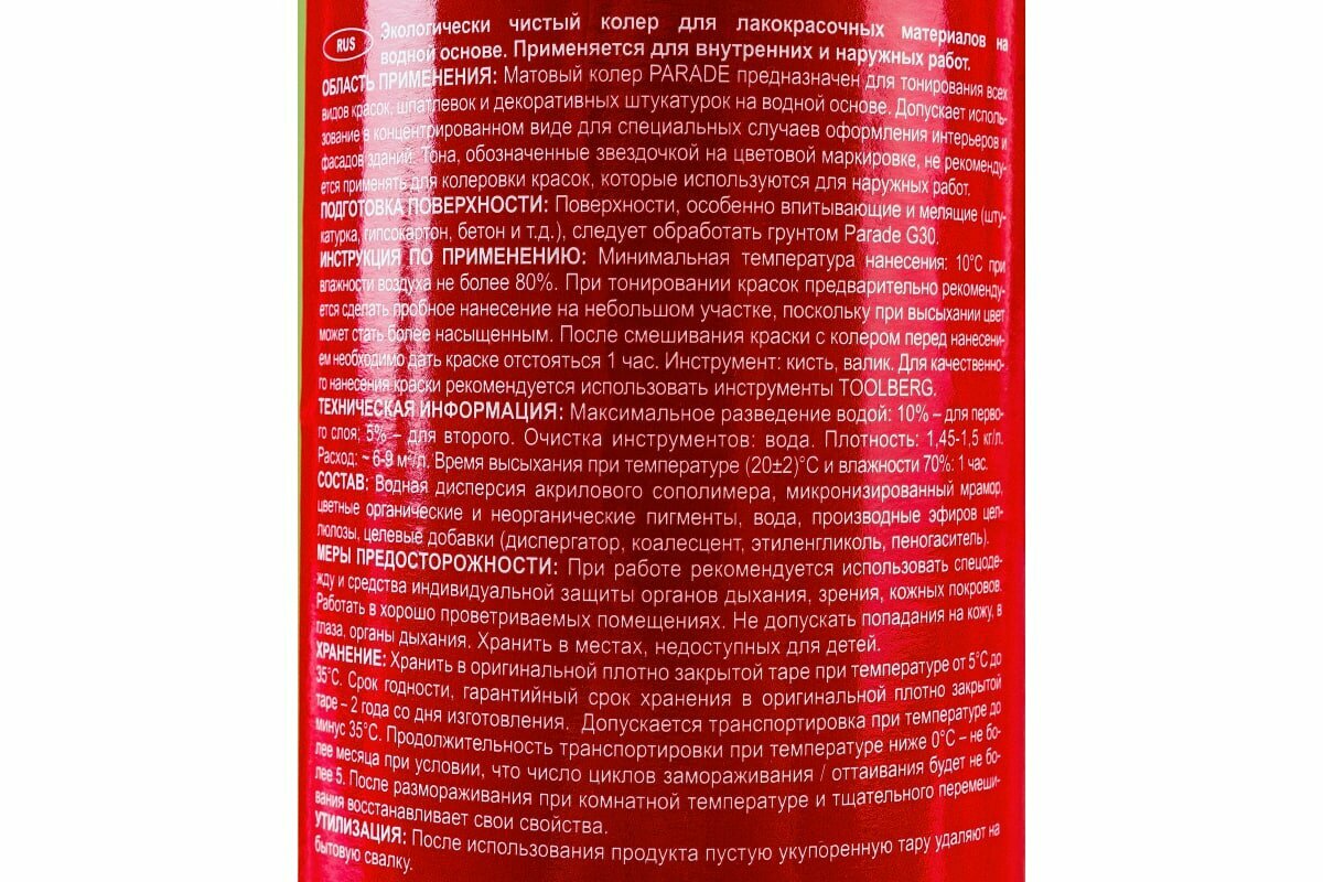 Паста колеровочная parade 0,25л 209 алый