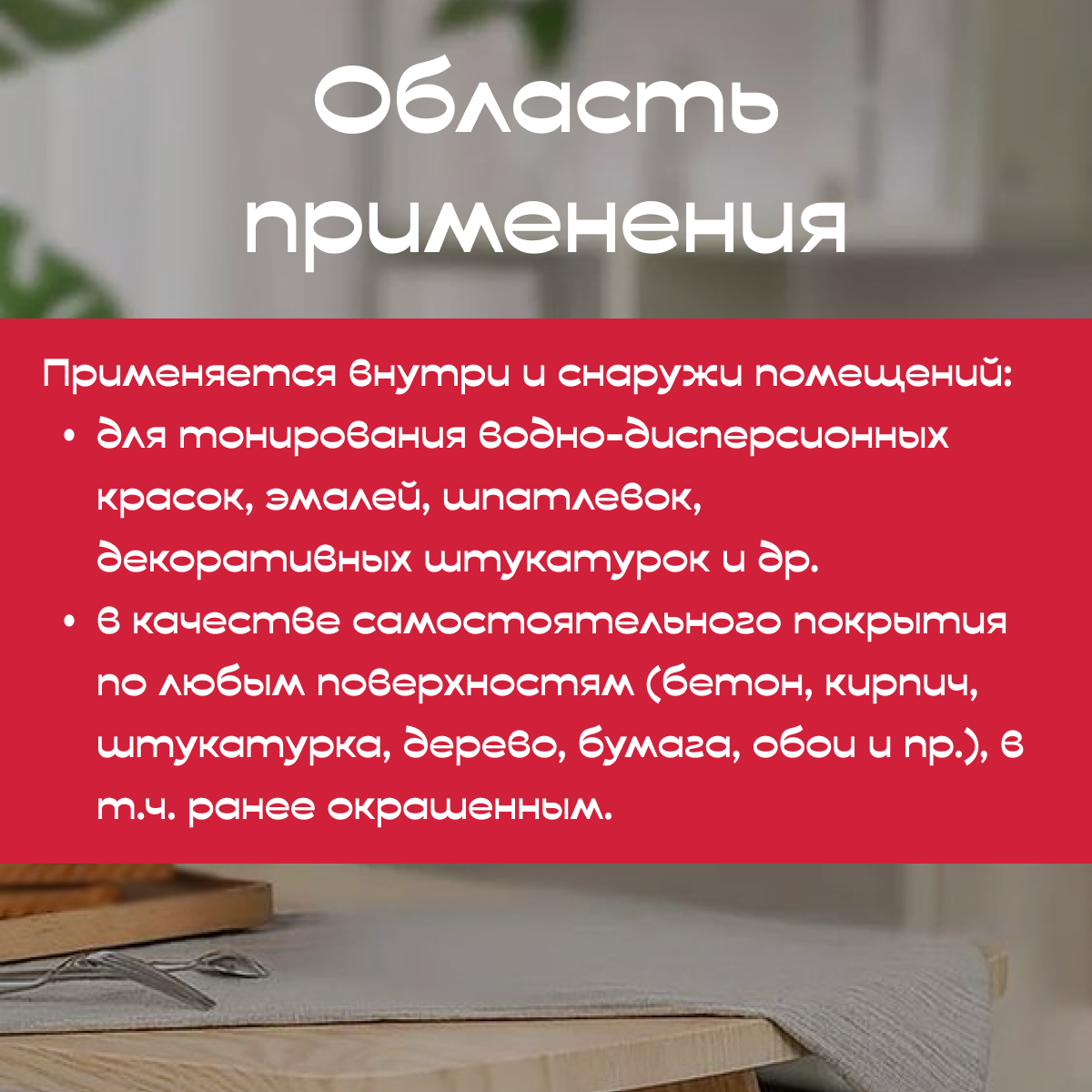 | Назначение | для водоэмульсионных и дисперсных красок |