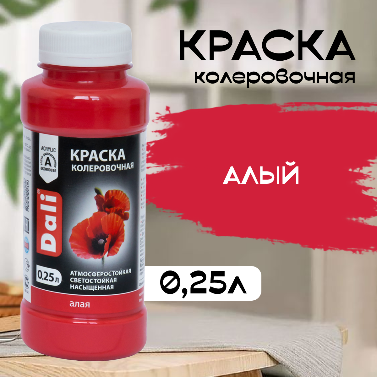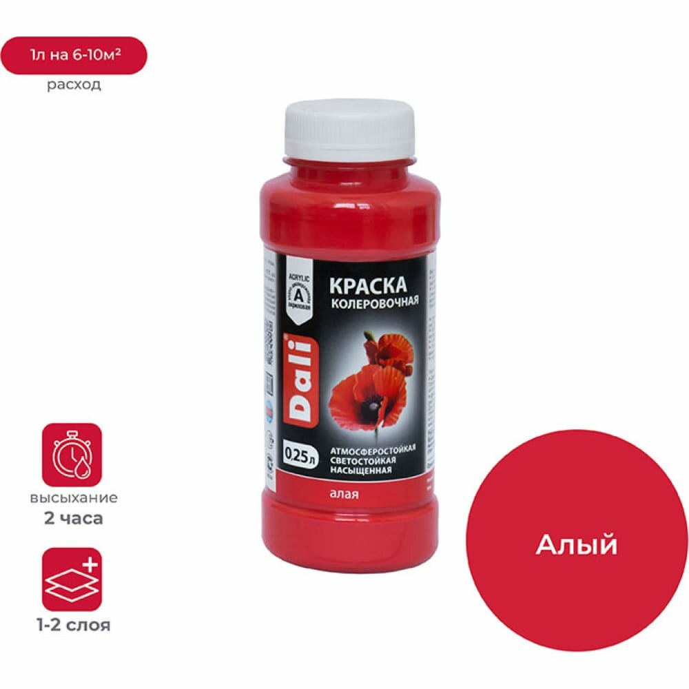 Колеровочная краска DALI акриловая, алый, 0.25 л