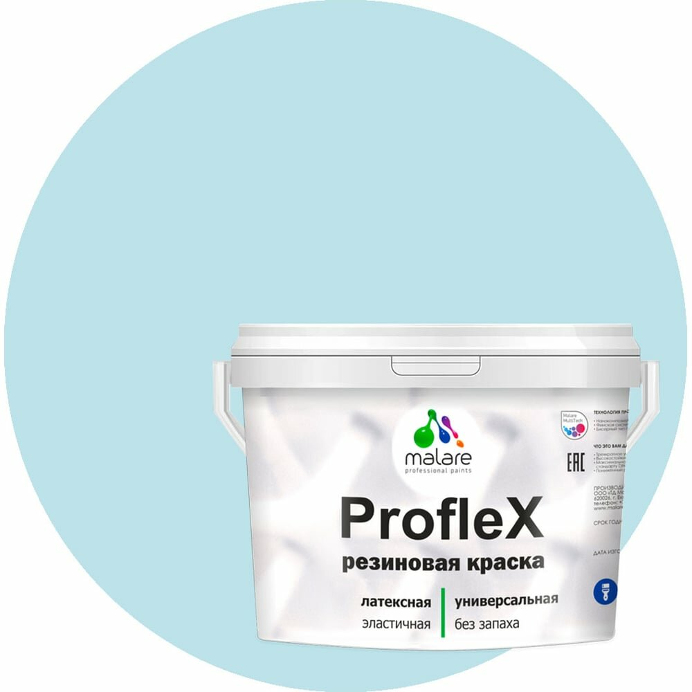Краска резиновая Malare ProfleX для фасадов, интерьера, мебели, кровли, цоколей, универсальная, эластичная моющаяся, быстросохнущая, без запаха, матовая, акварельно-голубой, 1 кг.
