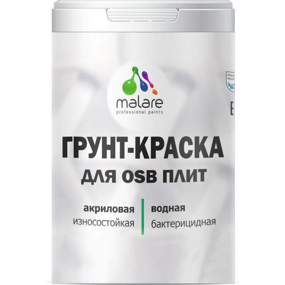 Краска Malare для OSB плит, деревянных и минеральных поверхностей, фасадная, интерьерная, универсальная, с антисептическим эффектом, быстросохнущая, без запаха, матовая, белый, 2 кг.
