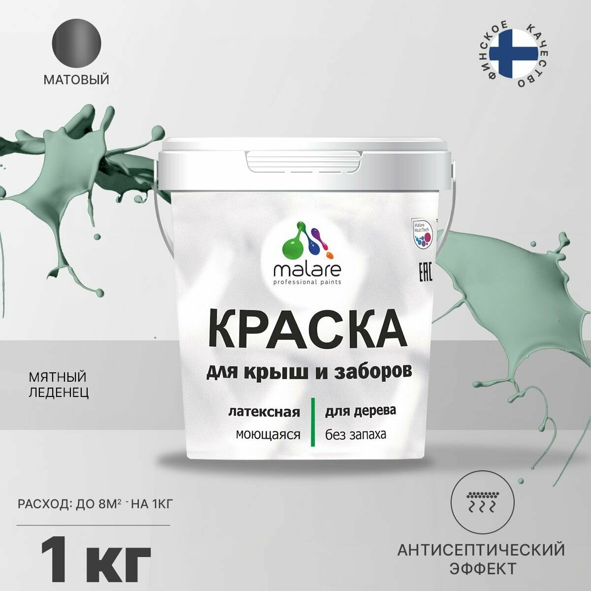 Краска Malare для деревянного забора, для крыши из шифера, для деревянных и минеральных поверхностей, с антисептическим эффектом, быстросохнущая, без запаха, матовая, мятный леденец, 1 кг.
