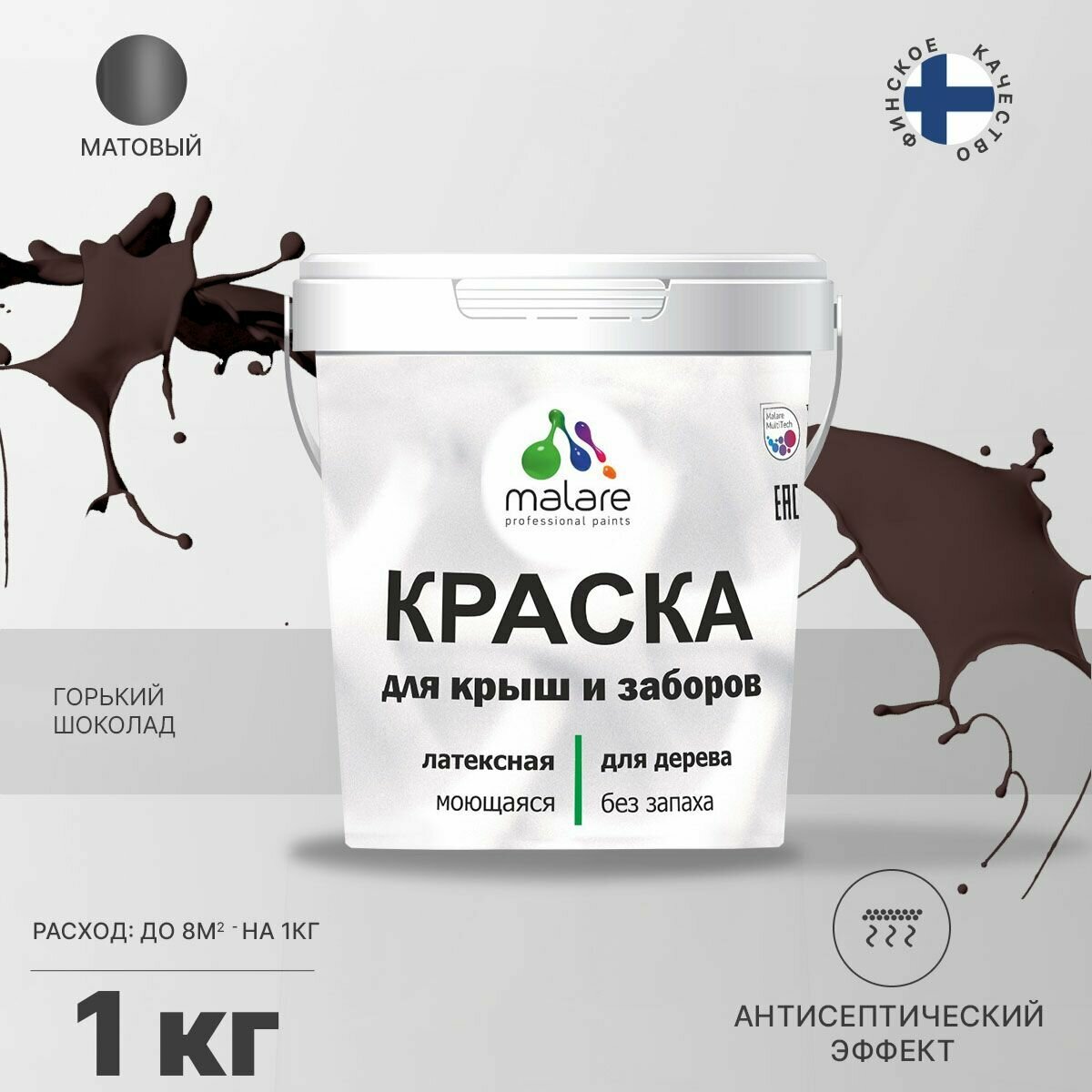 Краска Malare для деревянного забора, для крыши из шифера, для деревянных и минеральных поверхностей, с антисептическим эффектом, быстросохнущая, без запаха, матовая, шоколад, 1 кг.