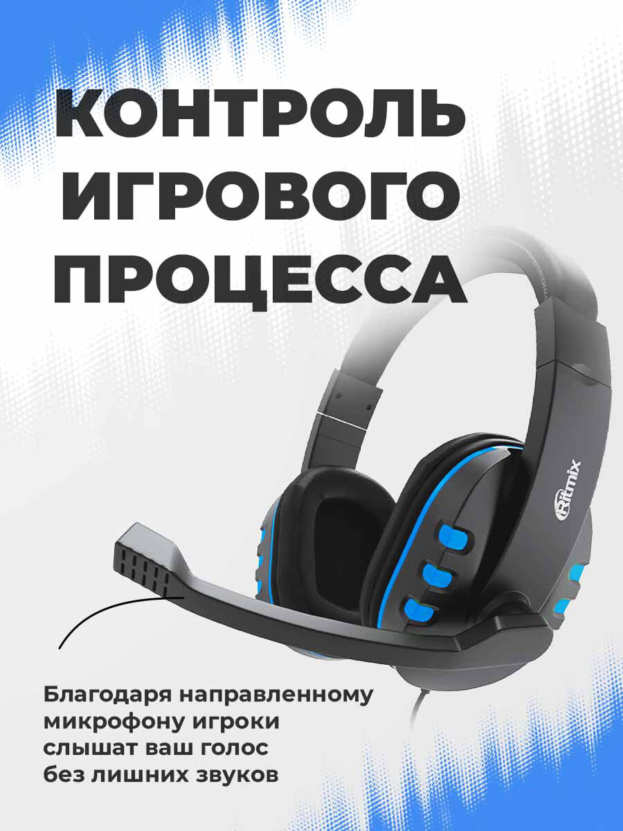 Гарнитура игровая RITMIX RH-555M 2 м, синий