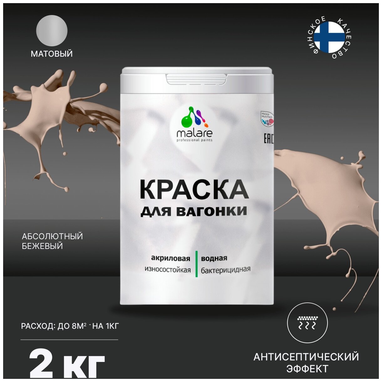 Купить Краска Malare для вагонки и любых деревянных поверхностей, для фасадов и интерьера, быстросохнущая без запаха матовый, абсолютный бежевый, 2 кг