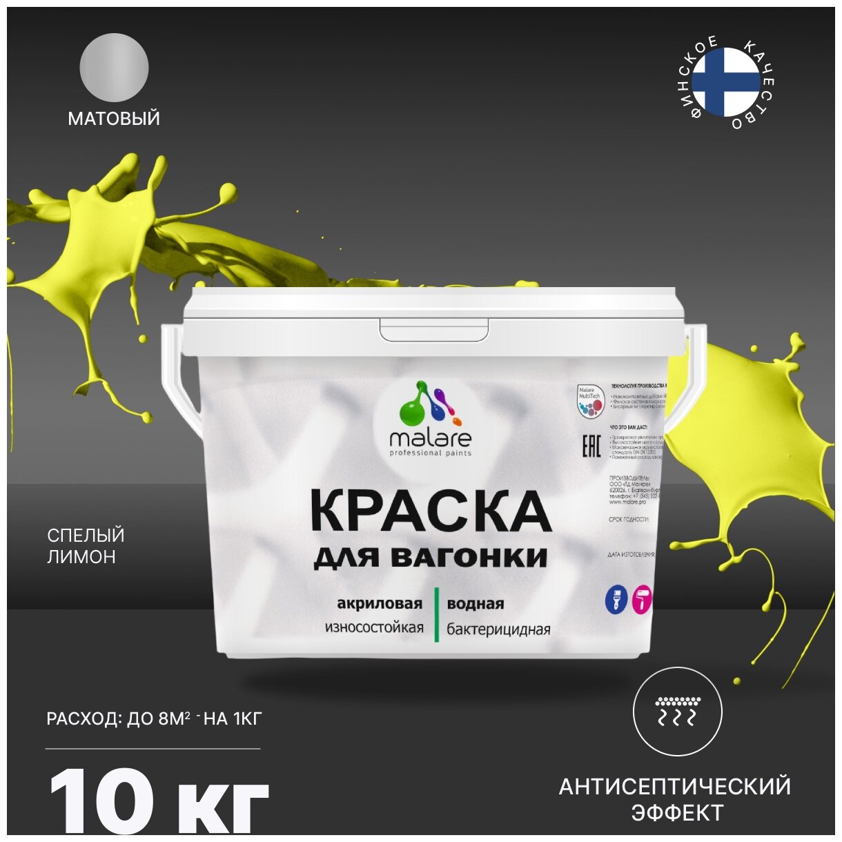Ниже Вы можете прочитать отзывы на Краска Malare для вагонки и любых деревянных поверхностей, для фасадов и интерьера, быстросохнущая без запаха матовый, cпелый лимон, 10 кг, ознакомится с подробными характеристиками, посмотреть интересные обзоры и фотографии на Краска Malare для вагонки и любых деревянных поверхностей, для фасадов и интерьера, быстросохнущая без запаха матовый, cпелый лимон, 10 кг.
