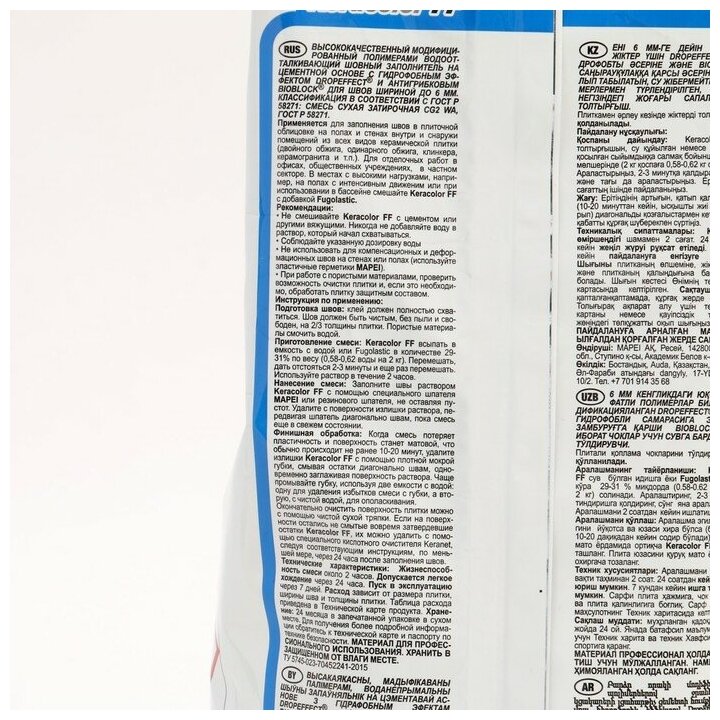 MAPEI Затирка KERACOLOR FF № 112/2кг (Серый) 5QA011202A