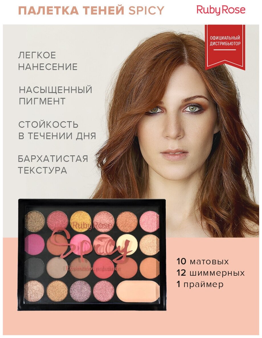Палетка теней для век "Spicy", Ruby Rose, 22 оттенка теней и праймер интересное: