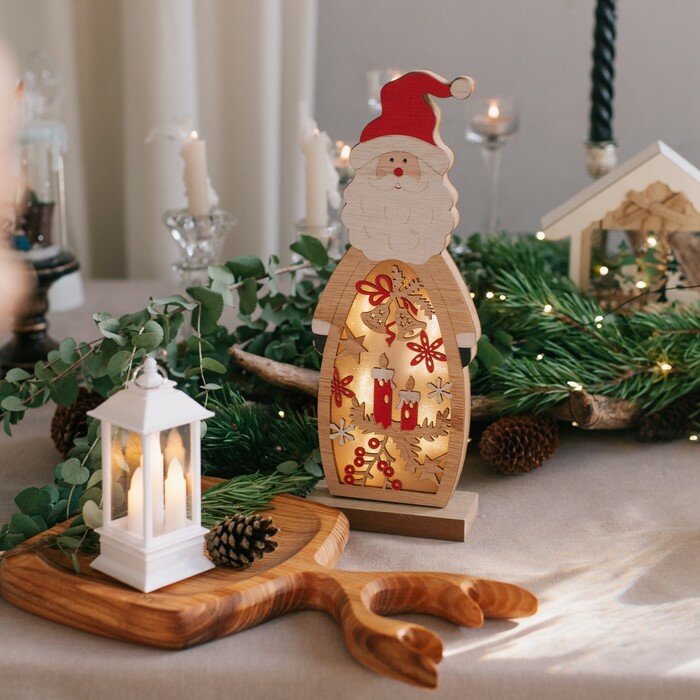 Купить Светодиодная фигура «Дед Мороз» 11 × 28 × 5 см, дерево, батарейки АААх2 (не в комплекте), свечение тёплое белое