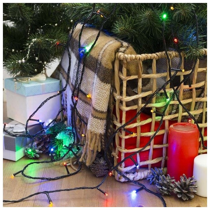 Гирлянда 20м, IP20, тёмная нить, 200LED, свечение мульти, 8 режимов, 220В Арт.: 3556811