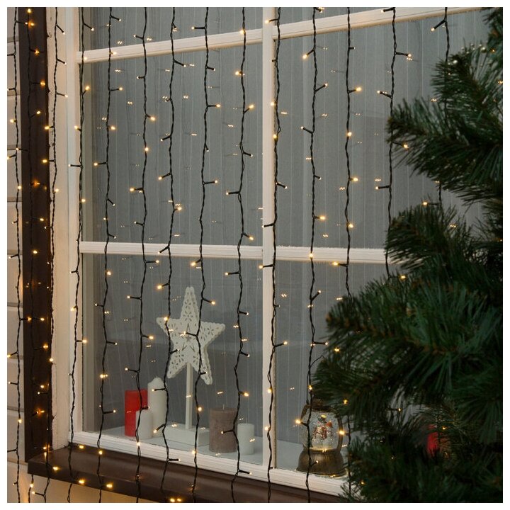 Гирлянда «Занавес» 2 × 3 м, IP44, УМС, тёмная нить, 760 LED, свечение тёплое белое, 220 В