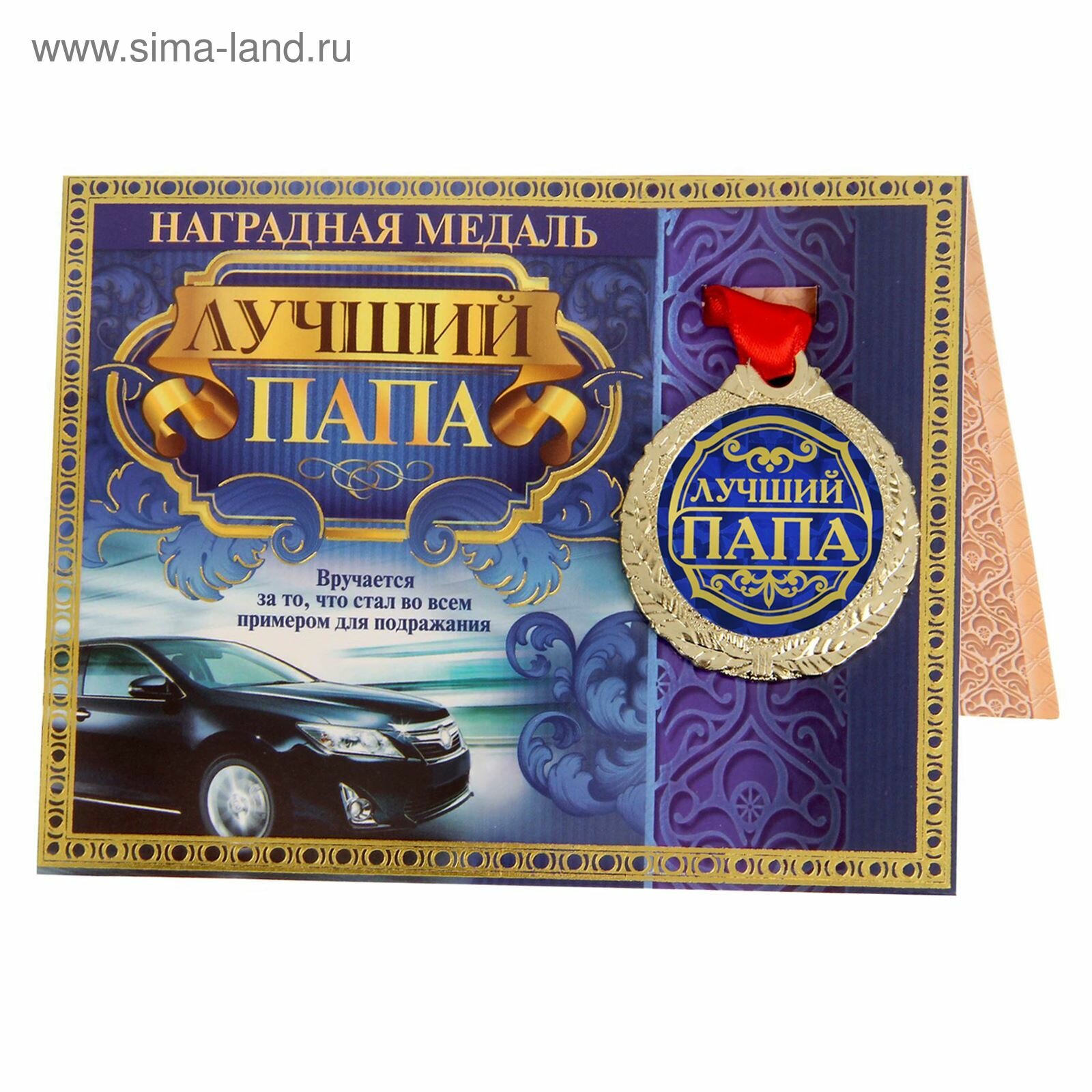 Медаль на открытке "Лучший папа", диам 4 см / Подарок