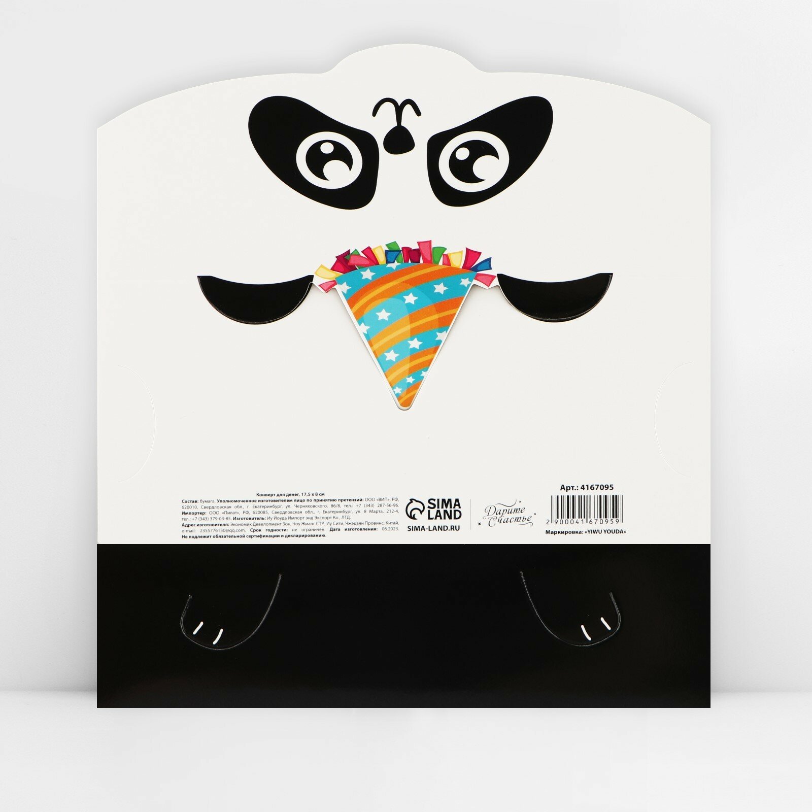 Конверт для денег формовой «Милая панда», 17,5 х10см интересное: