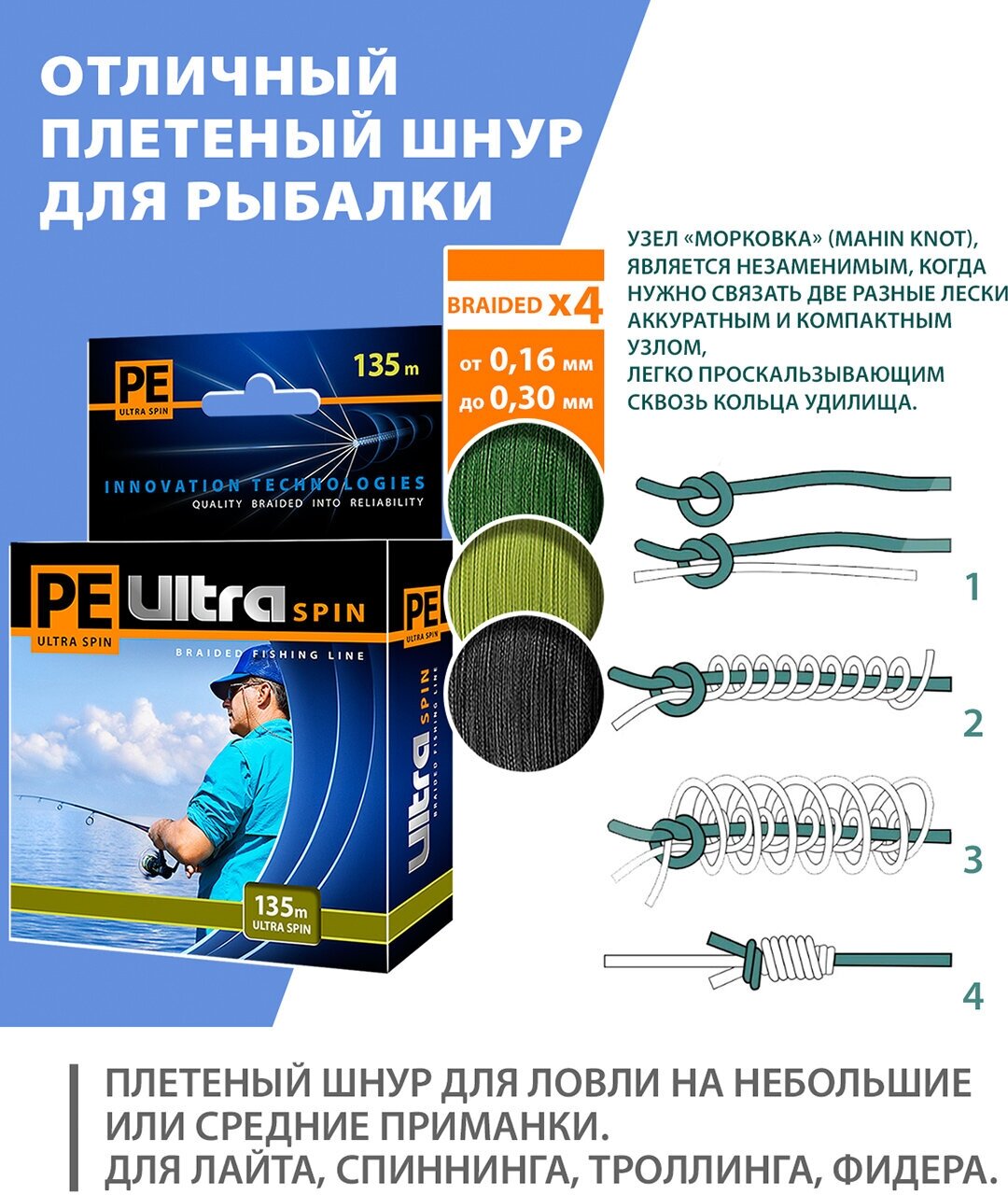 Ниже Вы можете прочитать отзывы на Плетеный шнур для рыбалки AQUA PE ULTRA SPIN x4 Dark Green 135m 0.16mm 10.2kg / плетенка на спиннинг, троллинг, фидер (2 шт), ознакомится с подробными характеристиками, посмотреть интересные обзоры и фотографии на Плетеный шнур для рыбалки AQUA PE ULTRA SPIN x4 Dark Green 135m 0.16mm 10.2kg / плетенка на спиннинг, троллинг, фидер (2 шт).