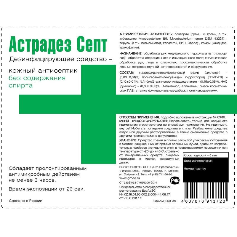 Антисептик кожный Астрадез Септ 250 мл, без спирта УТ000003067