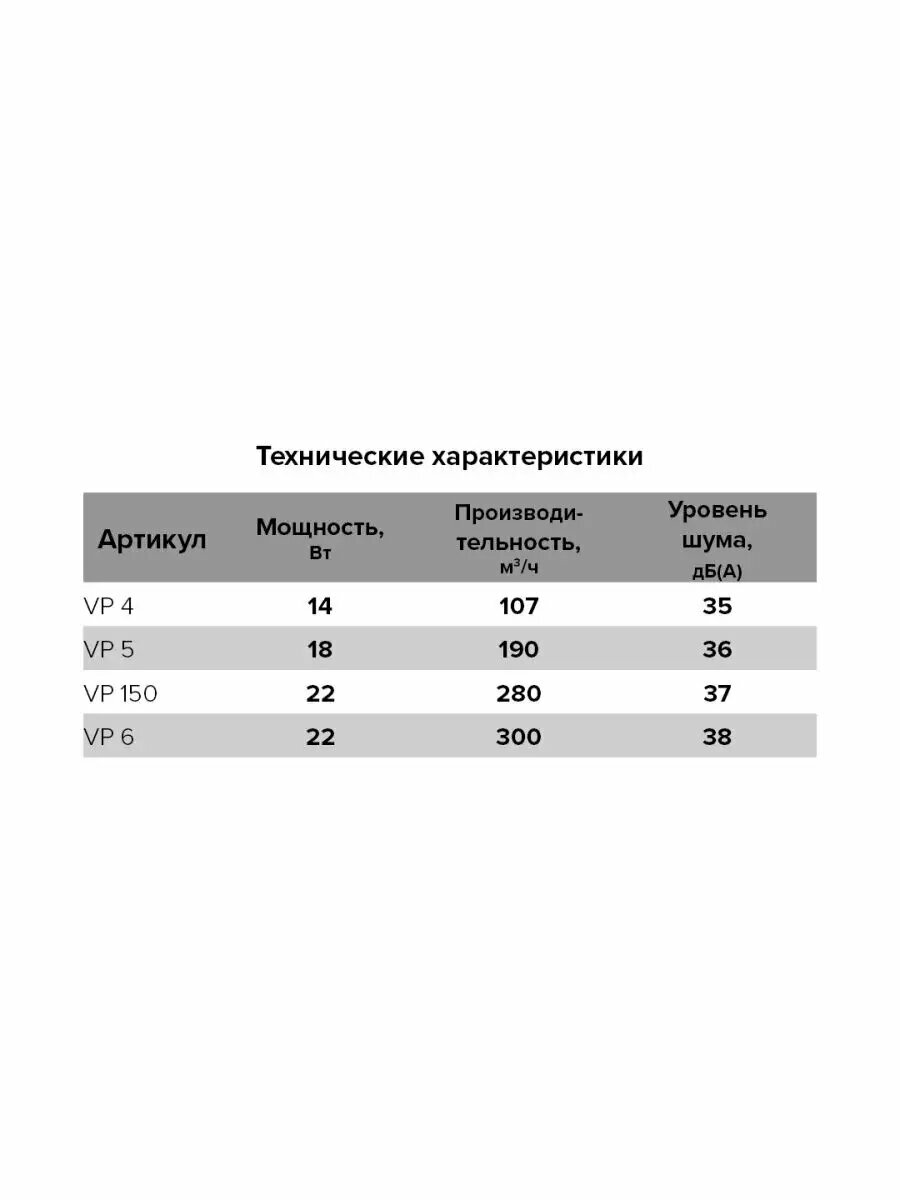 Ниже Вы можете прочитать отзывы на VP 5, Вентилятор осевой канальный вытяжной D 125,, ознакомится с подробными характеристиками, посмотреть интересные обзоры и фотографии на VP 5, Вентилятор осевой канальный вытяжной D 125,.