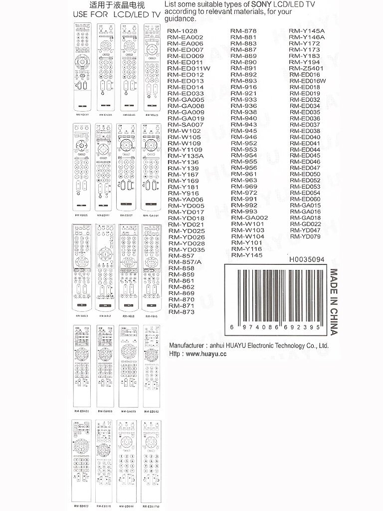 Пульт Huayu для Sony RM-L1370