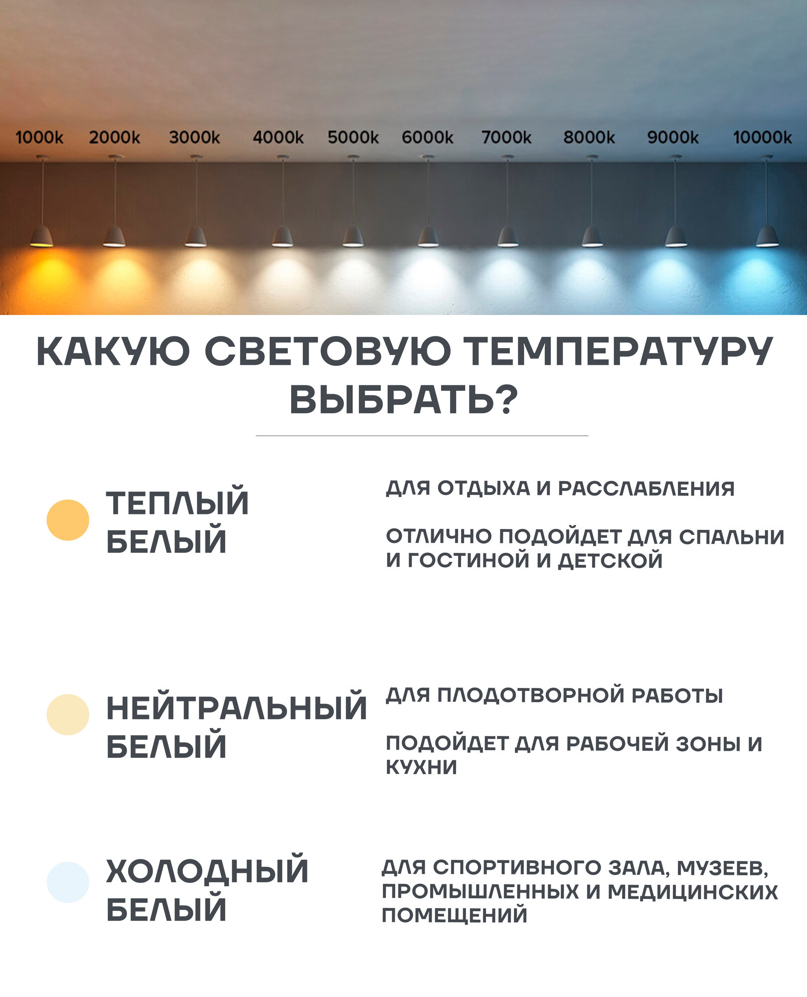 | Цвет свечения | белый / дневной / теплый / теплый белый |